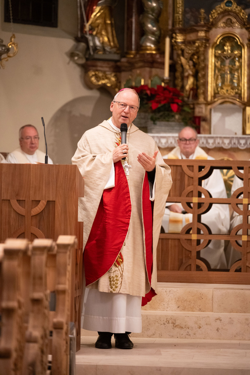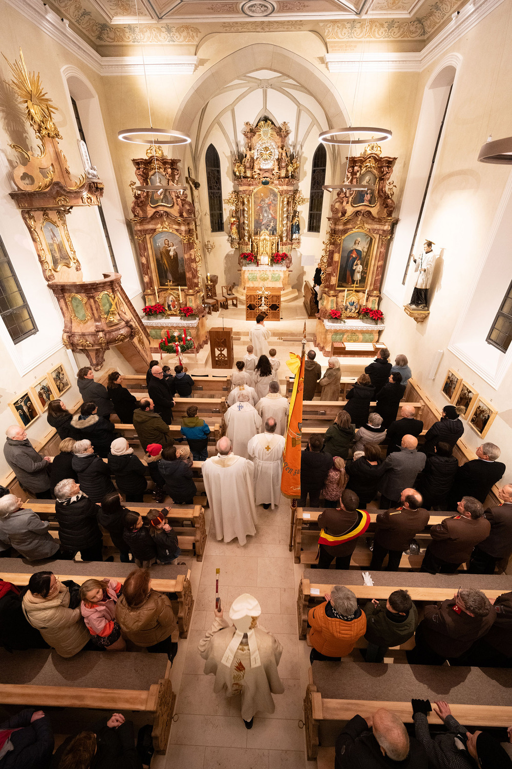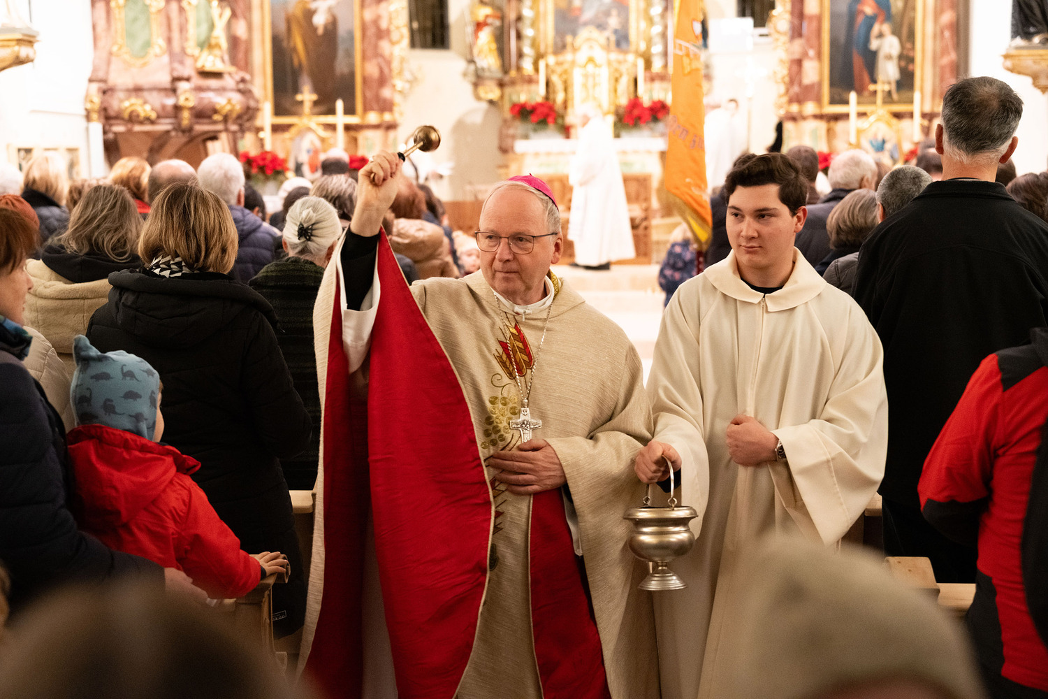 Darauf ging auch Bischof Benno Elbs beim feierlichen Festgottesdienst ein. Er beschrieb den Altar als Mittelpunkt der Kirche und damit als das Zentrum unseres Glaubens. „Gott ist mitten unter uns“, so Elbs. Gleichzeitig zog der Bischof einen Vergleich mit der jüngst ebenfalls wiedereröffneten Pariser Kathedrale Notre-Dame. „Das ist eure Notre-Dame“, meinte er und sprach den Raggaler:innen damit wohl aus dem Herzen. Musikalisch gestartet wurde die Feier vom Kirchenchor, während nach der Messe der Musikverein Fraßenecho bei der Agape aufspielte.