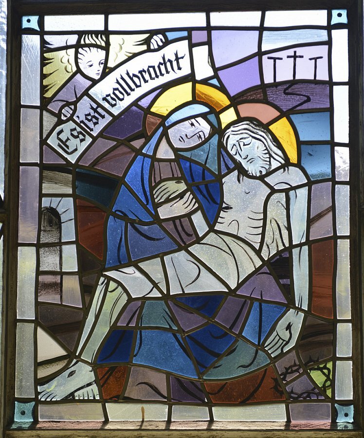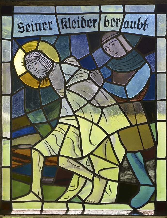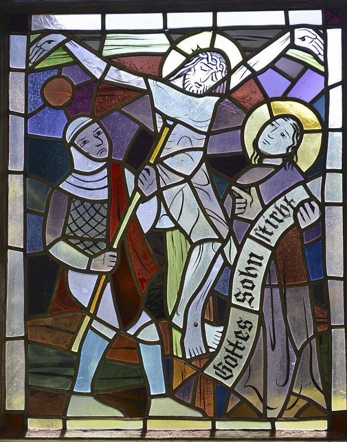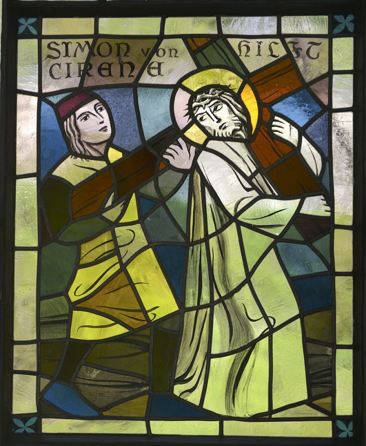 Glasmalerei Hubert Fritz 1955, Kreuzweg, bez., H. Fritz, Ausführung B. Sallaserra