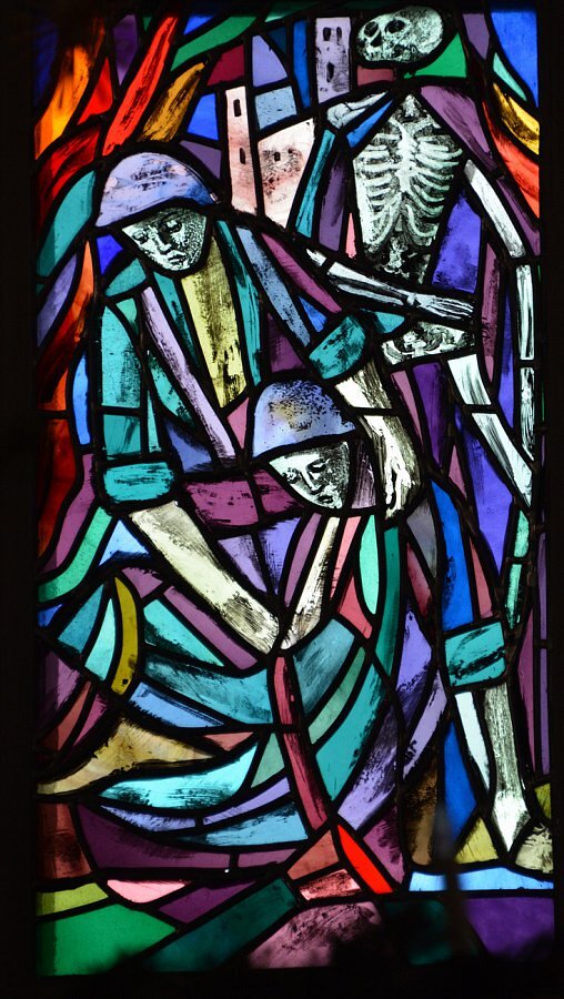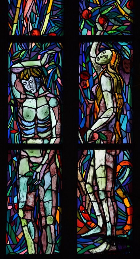 Im Chor zwei Glasfenster von Hubert Berchtold 1952:
