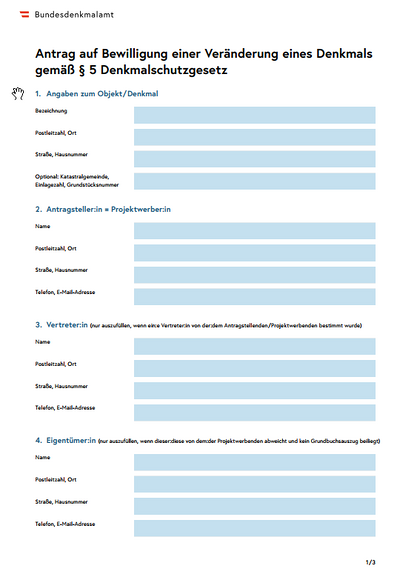 Antrag auf Veränderung Bundesdenkmalamt gem. §5
