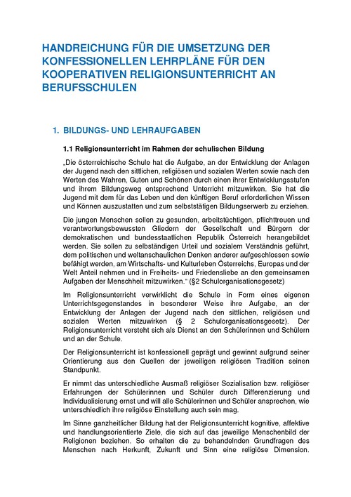 Handreichung kooperativer Religionsunterricht an Berufsschulen
